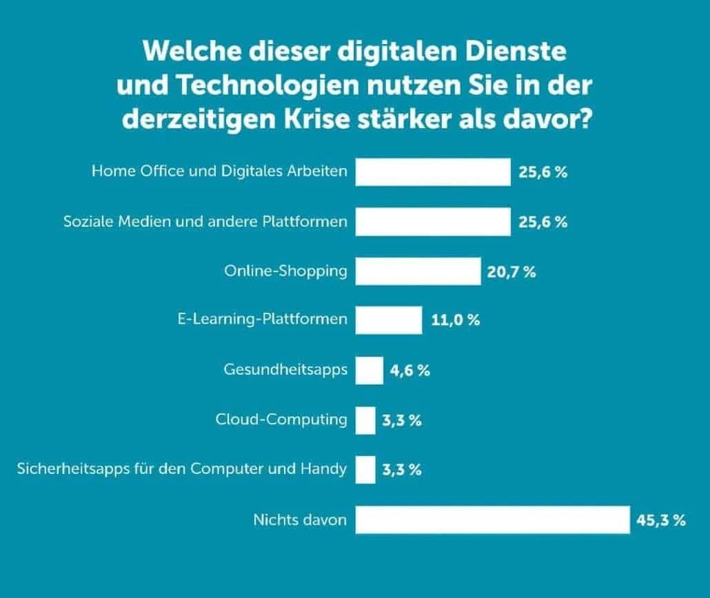 Besonders der Bedarf für digitale Arbeitswerkzeuge ist in der Krise deutlich gestiegen: So gab rund ein Viertel (25,6 Prozent) der von Eco Befragten an, aktuell stärker auf Online-Tools zum digitalen Arbeiten zurückzugreifen.