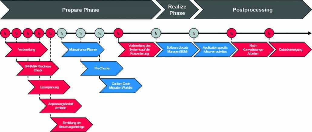 Simple Move ist eine Schritt-für-Schritt-Dokumentation, die angelehnt ist an das Konvertierungsphasenmodell von SAP. Ähnlich wie bei SAP ist auch hier der Konvertierungsprozess in Phasen eingeteilt, die nacheinander abgearbeitet werden. Bei SAP gibt es eine Vorbereitungsphase, eine Realisierungsphase und eine Phase für Nacharbeiten. Simple Move ergänzt dieses Modell um wesentliche Schritte für die Migration der jeweiligen Add-Ons.