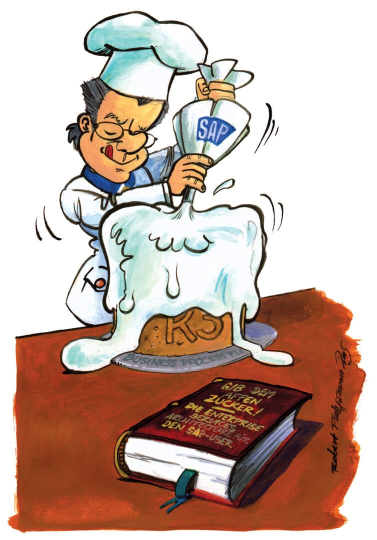 La caricature de Robert Platzgummer (1975 à 2016) a été publiée pour la première fois dans le numéro d'octobre 2005 de l'E3. Le professeur Henning Kagermann, alors à la tête de SAP à Walldorf, a tenté de faire de douces promesses pour établir une nouvelle architecture de services d'entreprise (ESA).